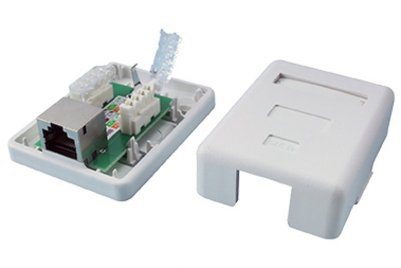 Zásuvka C5E STP 1 x RJ45 AP WH PCB mount box typ IDC: samořezný ROHS (vyhovuje pro KRONE/110 nástroj)