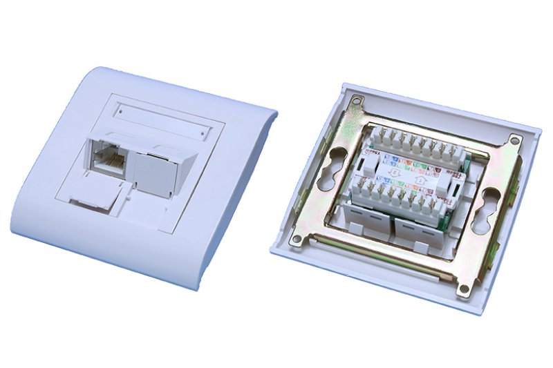 Zásuvka C5E STP 2 x RJ45 UP WH FA typ: 80 x 80 mm úhlový PCB modul: 50 x 50 mm IDC: duální ROHS
