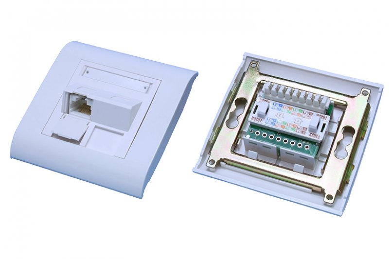 Zásuvka C5E UTP 1 x RJ45 UP WH FA typ: 80 x 80 mm úhlový PCB modul: 50 x 50 mm IDC: duální ROHS