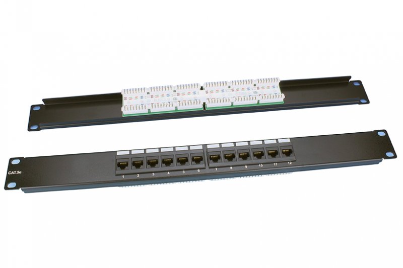 Patch panel L 19" C5E UTP 12P 1U BK horizontální H typ IDC: duální W/O CAP ROHS