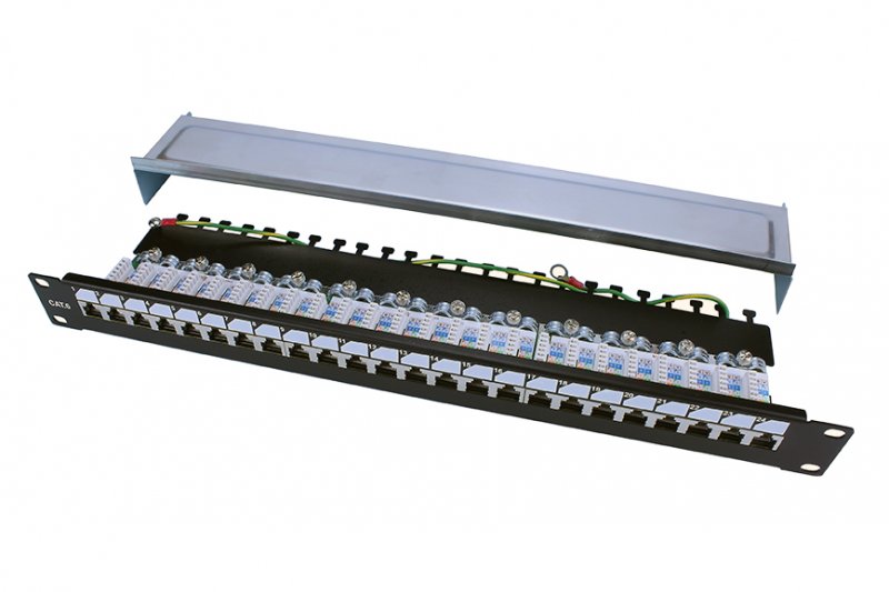 Patch panel L 19" C6 FTP 24P 1U BK vertikální DN typ IDC: duální ROHS