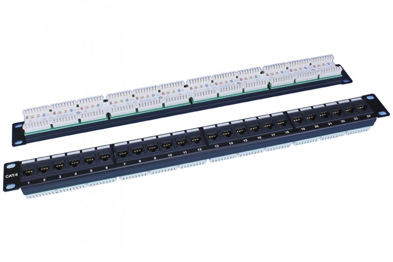 Patch panel L 19" C6 UTP 24P 1U BK horizontální H typ IDC: duální W/O CAP ROHS