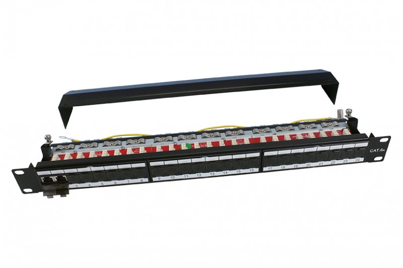 Patch panel L 19" C6A FTP 24P 1U BK IDC: KRONE W/O CAP zadní kabelový management ROHS